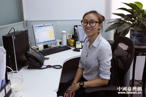 來自臺灣的大三女生莫景婷爭取到大陸企業為期一個月的實習機會。(中國臺灣網 普燕 攝)