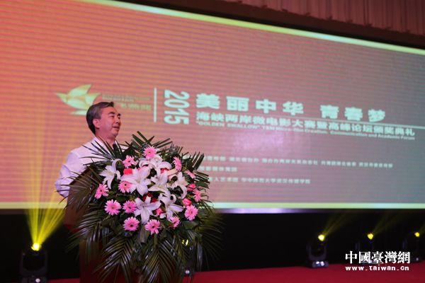 湖北省委常委、省宣傳部部長梁偉年出席第二屆海峽兩岸微電影高峰論壇頒獎典禮並致辭。(中國臺灣網 高旭 攝)