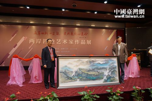 中國臺灣網9月29日北京訊 9月29日,由臺盟中央、港澳臺美協和北京市臺聯共同主辦,北京臺灣會館承辦的《兩岸四地藝術家作品展》,作為第二屆“大江論壇”係列活動之一,今日在臺灣會館開展。此次藝術作品展匯集了大陸、臺灣、香港、澳門四地知名藝術大師的百余件藝術精品。這些作品凝聚了兩岸四地藝術家們的心血,展示了他們高超的藝術技藝和修為。無論是水墨丹青里描繪的壯美河山,還是油彩畫布上抒發的家國情懷,亦或是燒制在瓷器上的高古志趣,都集中體現了我們中華民族文化藝術之大美,帶給我們美的享受。