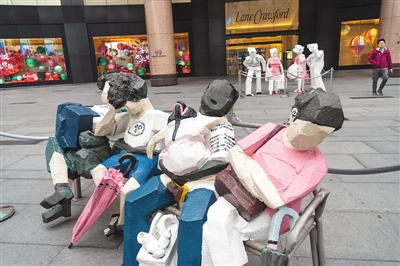 本周,臺灣著名藝術家朱銘的《人間係列》四個子係列:《購物》、《寶貝》、《休息》和《裙的故事》,在上海淮海路上展出,給上海街頭帶來藝術氣息。 王岡攝