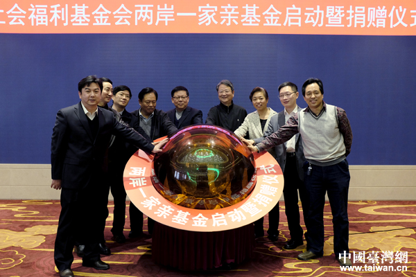汪毅夫、梁國揚、蘇輝、戚學森、安峰山、江天紅等領導和嘉賓共同點亮“兩岸一家親基金”啟動球。(中國臺灣網 普燕 攝)