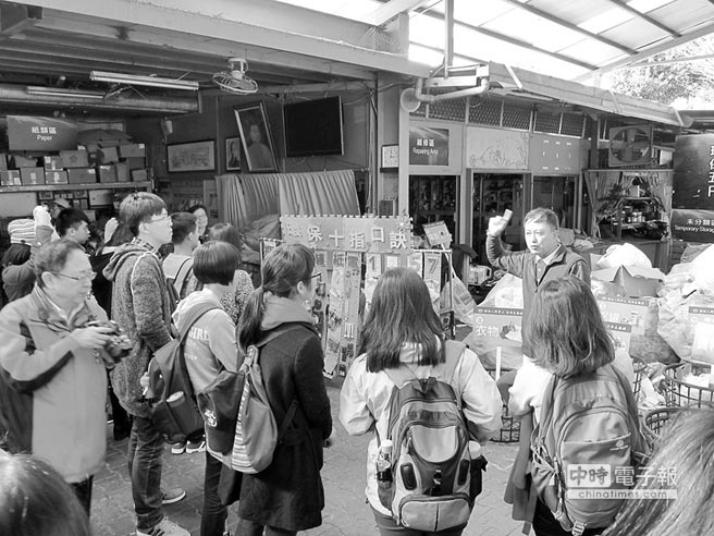 兩岸學生一道參訪志工單位,聆聽解說。(圖片來源于中時電子報)