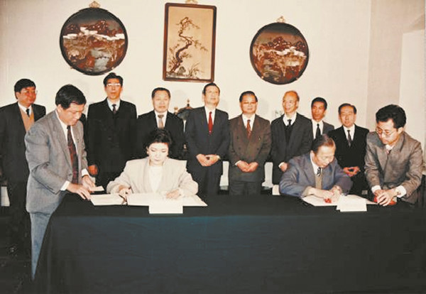1992年12月初的一天,一架載有“貴客”的華航飛機抵達臺北桃園機場,機內載有秦陵兵馬俑、滿城漢墓金縷玉衣等110件大陸珍貴文物。以兵馬俑和金縷玉衣為主題的“大陸古物珍寶展”,于當年12月5日在臺北外雙溪的玉山莊藝術館開幕。兩岸文物界隔絕40余年後的這一“破冰之旅”,拉開了兩岸文物交流的序幕。展覽持續了6個月,轟動一時,共吸引了38萬人次的臺灣同胞前來觀展,還包括張學良夫婦、蔣緯國、李煥、郝伯村、吳伯雄、辜振甫等臺灣名流。