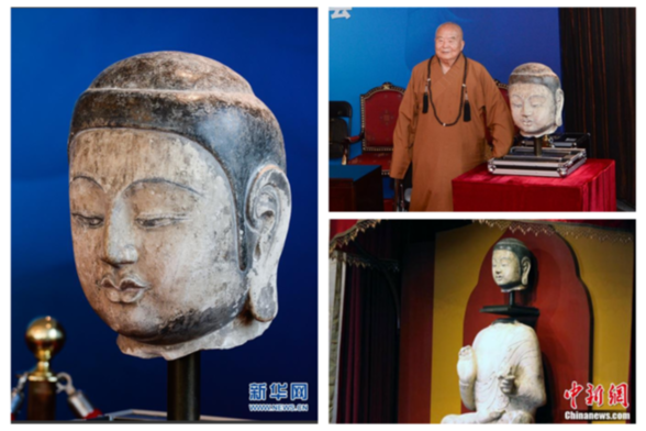 2016年2月26日,臺灣佛光山星雲大師攜其捐贈的北齊佛首造像抵達北京。此次回歸的佛首造像原供奉于河北省靈壽縣幽居寺,上世紀90年代被盜並流失海外。2014年星雲大師獲信眾捐贈佛首造像,2015年5月佛首佛身在臺灣佛光山寺合璧,2016年3月1日後將入藏河北博物院。(俞菁 綜合整理)
