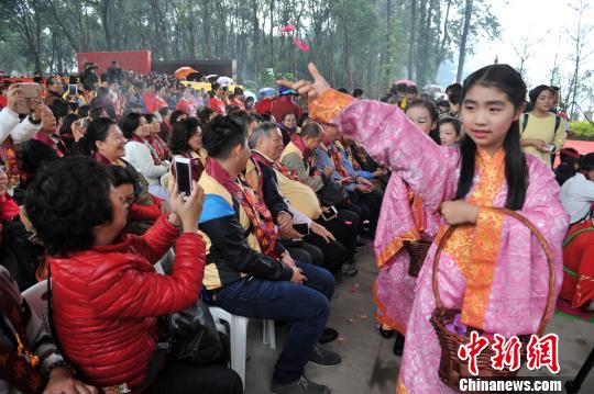 中新網福州3月6日電 (林春茵 劉可耕 王光華)6日,兩千名海內外信眾齊聚閩江畔的福州倉山江心公園,共同祭拜臨水夫人陳靖姑。臺灣臺南聖恩佛祖會會長盧友禮率28個臺灣宮廟代表執事禮拜,為第九屆閩臺陳靖姑民俗文化旅遊節拉開帷幕。