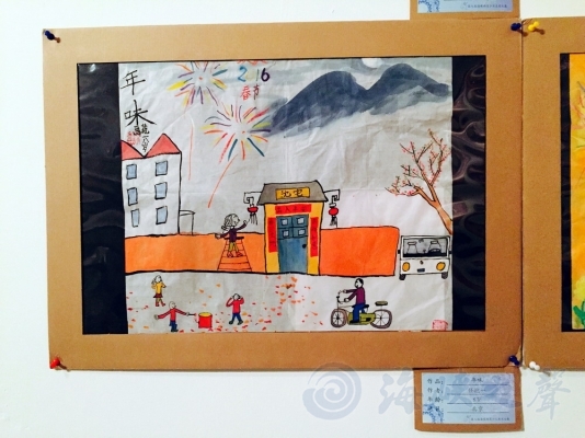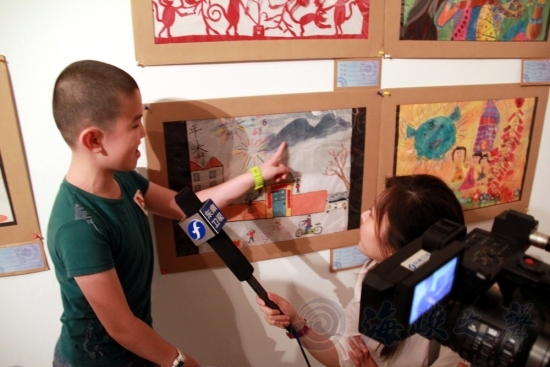 展覽現場氣氛熱烈,很多家長帶著小朋友前來參觀。八歲的北京小朋友任抱一找到自己的作品《年味》並告訴記者,很高興自己的畫能赴臺灣展出,希望以後能有更多分享的機會。記者在現場看到,由十多位來自高雄的小朋友共同創作的陶磚,色彩絢爛,吸引很多觀眾駐足。