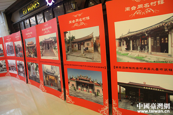 “第八屆海峽論壇 閩臺同名村鎮續緣之旅”啟動儀式在廈門舉行,圖為在儀式現場展示的閩臺同名村鎮圖片。(中國臺灣網 蕪同 攝)
