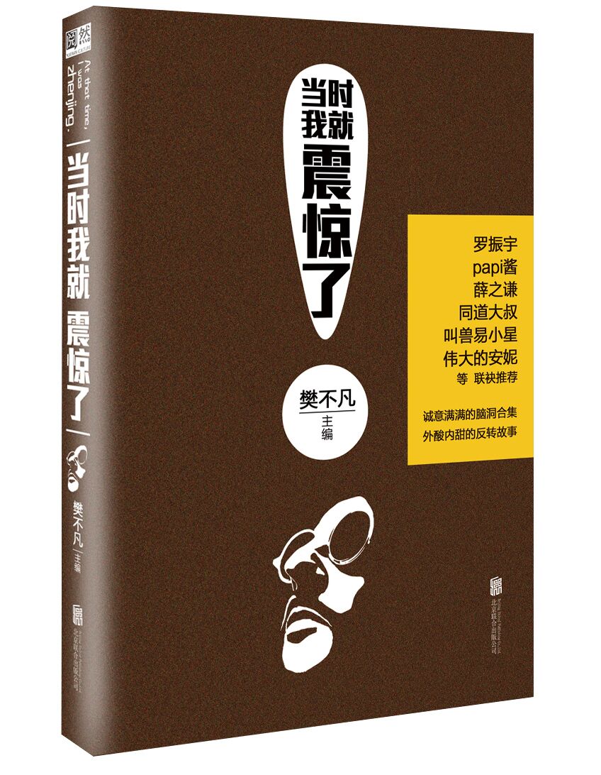 10月中旬,由新浪微博2600萬粉絲博主@當時我就震驚了主編,閱然文化出品的短篇小說合集《當時我就震驚了》正式上市。一經上市便在新媒體領域引起了討論熱度,隨著全部收益助力芭莎慈善公益消息的傳出,關注度更是與日俱增。無數讀者折服于本書中18個腦洞大開的神轉折故事,紛紛拍案叫絕,大呼“當時我就震驚了!”。此書更有羅振宇、Papi醬、薛之謙、同道大叔、叫獸易小星、偉大的安妮等聯袂推薦。