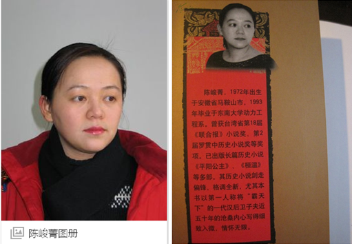 陳峻菁,從事歷史小說創作已經十余年。曾獲臺灣聯合報小說獎、羅貫中長篇歷史小說獎、第二屆全國劇本創作金獎等,被稱為“古典女性的最佳代言人”、“最擅長描寫女性心理的新銳女作家”。包括廖輝英、吳若權、施寄青、袁瓊瓊等多位臺灣名作家都為其作品寫過推薦文章,他們認為陳峻菁的歷史小說,以女性觀點而寫,透射出古代奇女子特有的智慧、勇氣和人格力量,在愛情的波折中,爭取完整的幸福。鮮活、深邃、宏觀,讓人驚艷,使人明智。