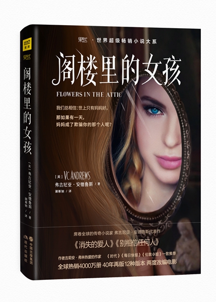 2016年11月,20世紀恐怖羅曼史小說家、美國歷史上最暢銷的作家之一弗吉尼亞?安德魯斯的代表作《閣樓里的女孩》 (Flowers in the Attic)簡體中文版首次出版上市,本書係北京紫圖圖書有限公司出品,現代出版社出版。它是《別相信任何人》《消失的愛人》作者吉莉安?弗林熱愛的黑暗經典,據真實故事改編,一部徹底顛覆你認知的黑暗經典!全球熱銷4000萬冊,已翻新12種版本,兩度改編電影。