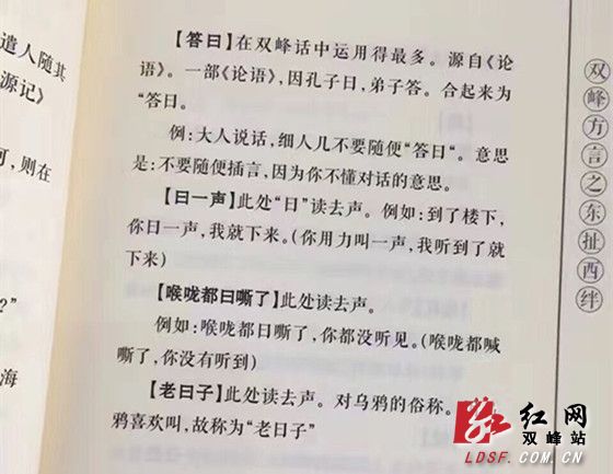 這本探討本地方言的書,由雙峰縣文聯主席陽劍等八人歷時一年,編撰而成。他們為了搜集詞條,專門設立微信群,組織本地方言愛好者共同收集,最後組成八人小組,對搜集的字詞進行篩選、分類、考證、注解、歸音歸義。
