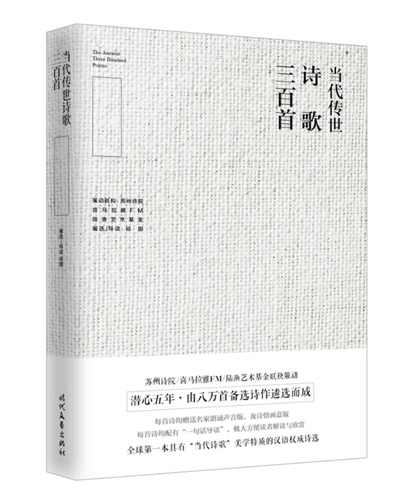 《當代傳世詩歌三百首》由蘇州詩院、喜馬拉雅FM、陸漁藝術基金聯袂策動,時代文藝出版社出版。每首詩均配有編者“一句話導讀”,並贈送名家朗誦聲音版及詩畫版,極大方便了讀者解讀與欣賞,首創了當代詩歌簡便、有效的立體傳播形式。