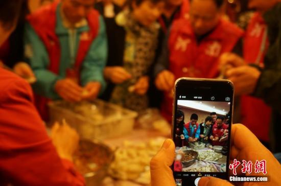 2月18日,是中國傳統佳節除夕,來自大陸的遊客歡聚在臺中市的一家餐館,親自上手包餃子歡度除夕夜。中新社發 李貴剛 攝