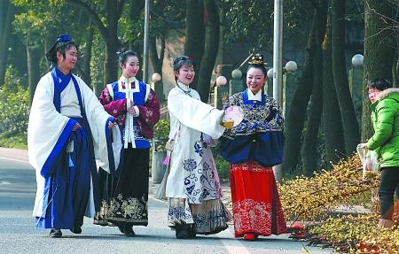 現場,每人均穿著各種款式、各種顏色的漢服,大家見面,相互鞠躬,作揖行禮,互稱為“同袍”。此次活動組織者趙品軍說:“我們所說的漢服,並非專指漢朝的服飾,而是指漢民族的傳統服飾”。據悉,此次活動經他通過網絡發起,共有120名“同袍”報名參加,不少人是在校學生。