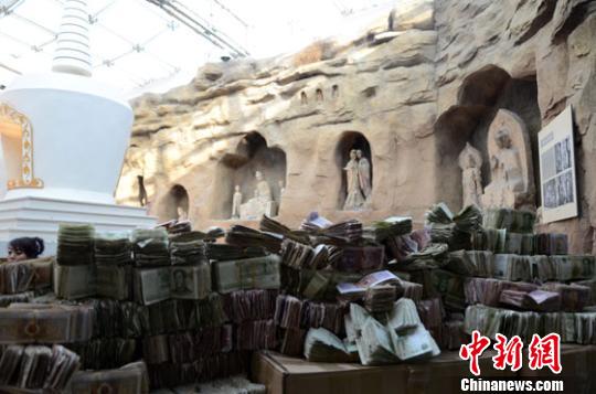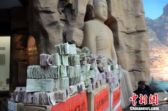 中新網蘭州1月21日電 (記者 馮志軍)21日上午,甘肅省博物館將融合了莫高窟、麥積山石窟、炳靈寺石窟等多地佛教藝術精華的佛教藝術展廳內,在過去一年收集到來自觀眾“供奉”的逾5萬元零散善款捐助給地處偏遠山區的“國寶”北石窟寺,助其更好保護。