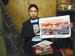除了舊書,老田還收藏了不少六七十年代期間印刷的毛主席畫像。有一次,他還在一間學校圖書館收到了20多年前印刷的國旗、國徽和中國地圖,每天的《廣州日報》頭版,老田都拿來收藏,他家里至今還收藏著香港回歸當天和新千年當天的《廣州日報》,“這些太珍貴了。”