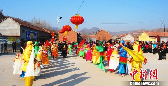 1月27日,寒氣逼人,在張家坡鎮劉家峪村的文化廣場內40多人的隊伍,一遍又一遍地練習著“跑馬燈”的陣型。