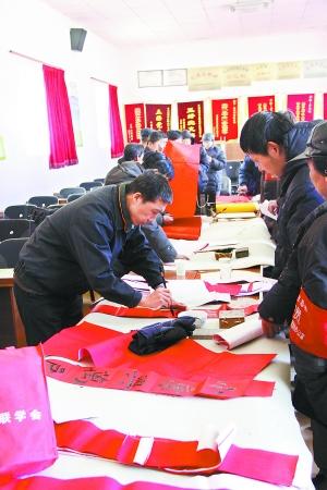 每逢春節,他們都會走區縣20多天,為村民撰寫對聯。如果加上城區的各種贈聯活動,迄今,學會已完成婚聯一千多副、壽聯四千多副、嵌名聯三萬余副。