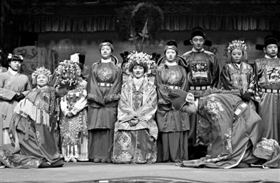 昨日,大觀園紅樓廟會開幕,“賈寶玉”和“林黛玉”對拜成婚,有情人終成眷屬。新京報記者 王叔坤 攝