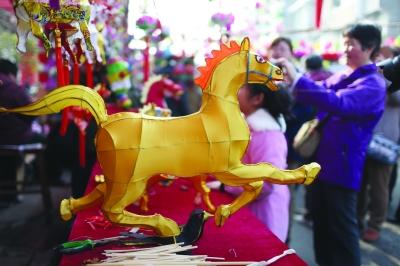 “過年不到夫子廟觀燈,等于沒過年;到夫子廟不買盞燈,等于沒過好年”。從老南京人的這句俗話也可看出夫子廟在新年期間的喜慶與熱鬧,到了夫子廟,更是少不了到花燈市場逛一逛。每年新春時節的花燈市場,人氣最旺的自然要數生肖主題燈。馬上有錢、馬上有對象……各種討吉利的“萌馬燈”讓人看得眼花繚亂,孩子們小手一指,大人們便爽快付錢,讓老板趕緊取下一盞。