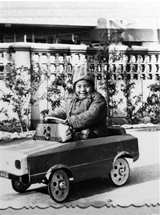 瞧,媽媽的童年多快樂!她在雪地里玩耍,她騎著小木馬,她在攀登假山……等等,我發現了一張很有趣的照片。照片里的媽媽比我現在看上去小多了,她正在駕駛一輛玩具汽車。那輛車看上去方方正正的,可沒有現在的卡丁車來得時髦,媽媽坐在車子里幾乎佔滿了座位。