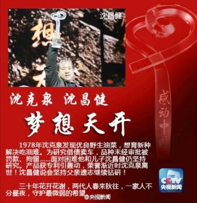 沈克泉,男,享年74歲,湖南省常德市臨澧縣楊橋村村民。沈昌健,男,46歲,湖南省常德市臨澧縣楊橋村村民。1978年,養蜂人沈克泉在貴州山區發現了3株花期長,生長結構好的野生油菜,將其帶回家鄉播種,想為養蜂場提供新的蜜源。