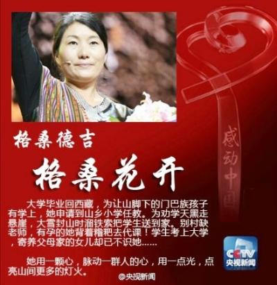 頒獎辭:不想讓鄉親的夢,跌落于懸崖,門巴的女兒執意要回到家鄉。堅守在雪山、河流之間,把知識一點點注入一個個鄉村。她用一顆心,脈動一群人的心,用一點光,點亮山間更多的燈火。