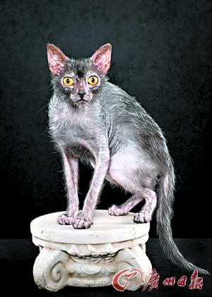 據報道,在將一只有自然突變基因的無毛貓和另一只家養黑色短毛貓配種之後,美國田納西州包括約翰·戈博在內的3名動物培育者培育出了10余只這一新品種的貓。他們將這種貓命名為Lykoi,這個詞來源于希臘語,意思為“狼貓”(右圖)。