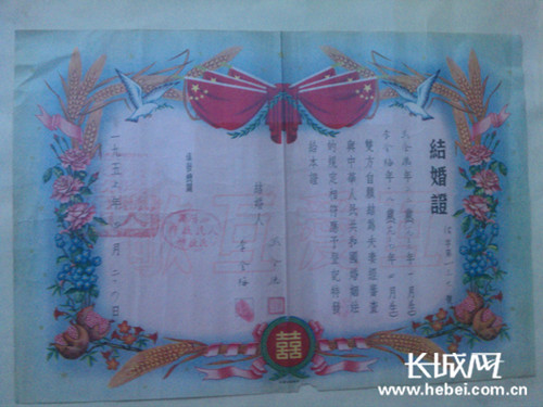 五十年代結婚證 吳江 攝