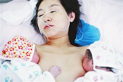 “懷孕第265天,終于在上午9點15分和20分剖宮產生下了龍鳳胎木木和朵朵。”