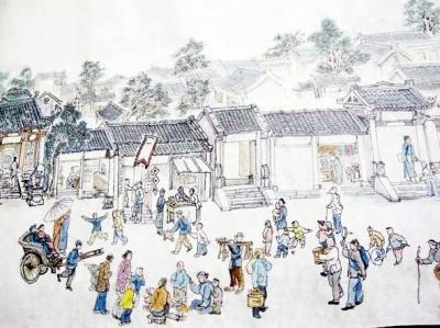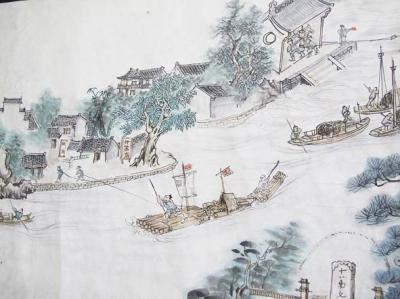 經過兩年半的苦心繪制,《仙女風情畫卷》兩易其稿,現基本完工。展開畫卷,從水運、木運到老行當,從大運河到禹王宮、仙女廟,從金銀器加工制作到耕田,從婚喪嫁娶到小兒遊戲玩耍……龍川老街的畫卷栩栩如生,如在眼前。