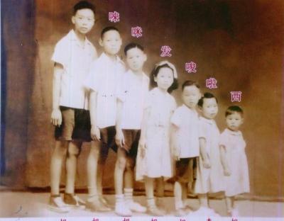 1946年,胡永康與6位弟弟妹妹。
