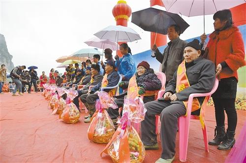 曉春初綻,煙雨繚繞。3月11日,上林縣第八屆萬壽節在白圩鎮愛長村智城廟隆重舉行,美麗的清水河畔變得熱鬧非凡,歌聲飛揚。據了解,上林縣萬壽節是上林的傳統節目,自2006年對外舉辦以來吸引了大批遊客前往參觀。今年與往年相比內容更豐富,節目更精彩。有公祭祈福儀式、萬壽公王巡遊,有猴鼓舞、瑤山鼓等民俗舞蹈表演,還有上刀山、搶花炮、山歌比賽、上林民俗攝影作品展、上林長壽產品展銷等活動,吸引了縣內外遊客上萬人參加。熱情的上林人民歡聚一堂,載歌載舞,歡慶萬壽節。