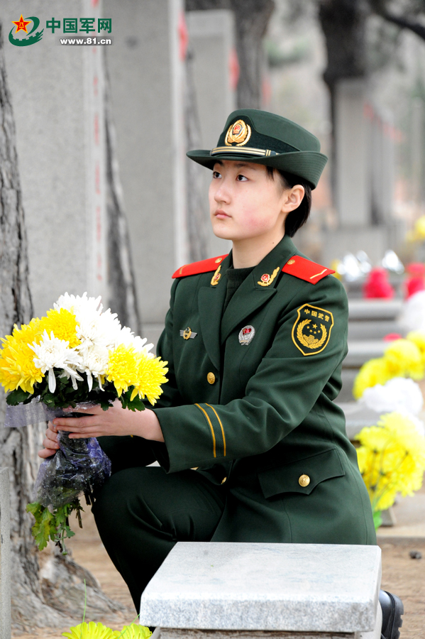 4月2日,在清明節到來之際,武警遼寧總隊通信站女兵來到沈陽抗美援朝烈士陵園祭掃烈士墓,緬懷先烈,用烈士的英雄事跡勵志官兵做黨和人民的忠誠衛士。通訊員吳成鋼 攝
