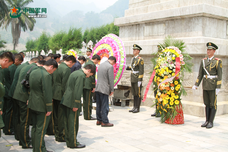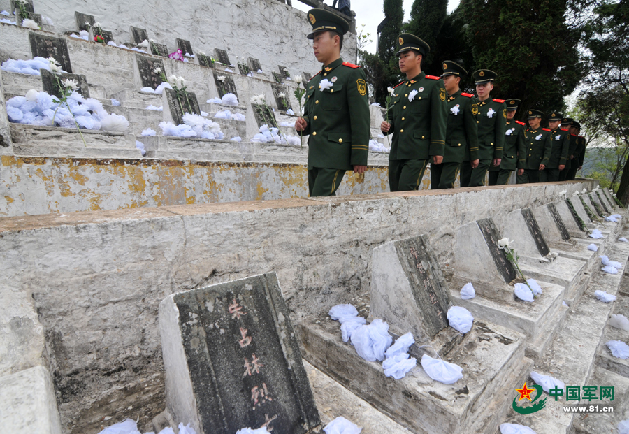 4月1日,武警8750部隊組織官兵來到麻栗坡烈士陵園祭掃烈士墓,緬懷先烈。清明節來臨之際,該部組織官兵前往麻栗坡、馬關、河口等5個烈士陵園祭掃烈士墓,緬懷為守衛祖國疆土而壯烈犧牲的英烈們。官兵通過祭掃烈士墓、聆聽英烈的英雄事跡等,感受著先輩們忠誠堅定的愛國信念和不屈不撓的戰鬥意志,用烈士們的英雄事跡激勵官兵愛軍精武,建功警營。在烈士紀念碑前,官兵們肅穆而立,向烈士紀念碑敬獻花籃,鞠躬默哀,深切緬懷革命先烈。通訊員顏國平 攝