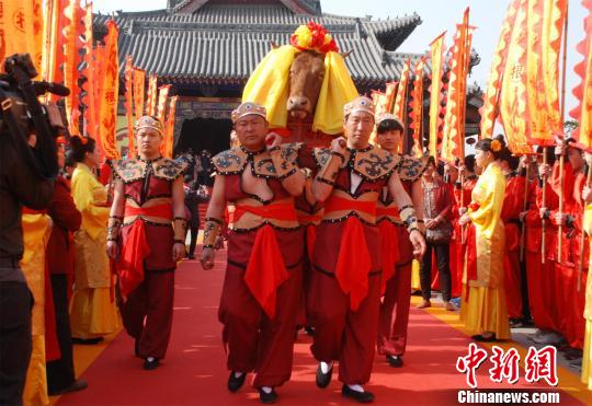 中新網洪洞4月5日電 (王燕君)5日,第二十四屆洪洞大槐樹文化節祭祖大典舉行,來自海內外的上萬名移民後裔相聚大槐樹下,共祭移民先祖,祈佑子孫安康、祖國興旺。