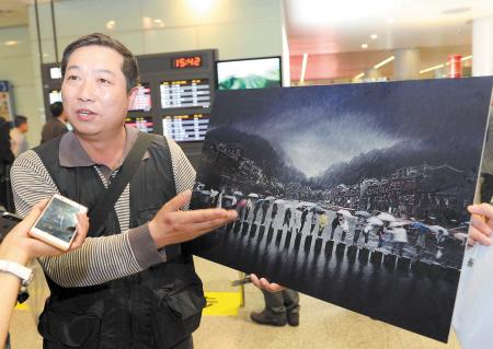 昨日下午,湖南省攝影家協會會員陳利從英國倫敦領獎後,乘機經北京回到長沙。4月30日,他的攝影作品《古城聽雨》在世界攝影組織主辦的索尼世界攝影獎評選中過關斬將,榮獲公開組旅遊類別總冠軍,同時獲得該賽事唯一的年度攝影師稱號。這也是中國大陸地區的攝影師首次問鼎該獎項。