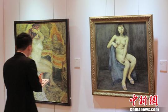 楊飛雲的油畫《女模特》(圖右) 姜煜 攝