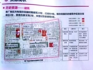 市規劃部門建議,將香廠劃定為歷史文化街區。整體格局方面,保留現有道路格局,整個街區以低層、多層建築為主,不再興建高層建築;沿主要道路建築風格以西洋式為主,並對現代化建築進行必要遮擋。建築遺存方面,歷史建築將保持建築歷史立面及歷史構件,存續歷史感,與環境共生。例如香廠路商住樓,可參考上海新天地,外部進行保護性修護。