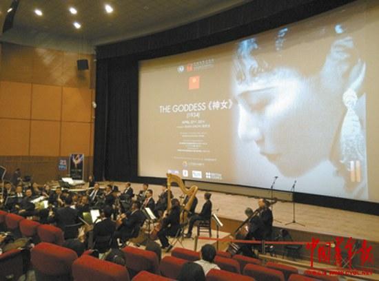 中國電影資料館《神女》放映現場,由中國愛樂管弦樂團全程現場配樂。