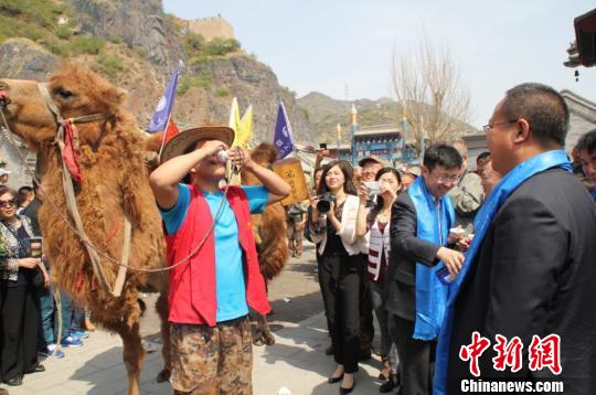 中新網張家口5月18日電(譚地 劉洋)“重走茶葉之路”駝隊18日在張家口市大境門景區舉行出徵儀,從這里,駝隊將正式走入百年張庫大道,在出徵儀式現場,張家口市民觀看茶道,品茶論茶。