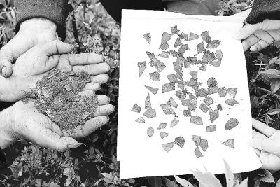 到達白泥塘村的第二天,經過鄉長溝通,村主任李加興終于同意讓考察團員參觀他家的祖棺。在一片石林里,他的兒子李自華和村民趙石才帶領我們來到一處隱蔽的懸崖邊。一眨眼,他們便像猿猴一樣攀爬了上去,在一個岩洞中取出祖棺。李加興說,他們老祖宗的葬俗就是懸棺,後來改成用小匣子裝靈魂片了。專家推測,當年僰人戰敗逃亡,不可能攜帶笨重的棺木同行,也不可能再繼續使用懸棺葬,何況丘北一帶又缺乏適合擺放懸棺的崖壁。于是,葬俗改變,出現了奇特的祖棺。這一葬俗源于何時,沒有文字記載。專家從棺內靈魂片氧化程度分析,約有500年左右,這與古代僰人懸棺葬終止的年代和丘北僰人洞穴葬形成的年代基本吻合。