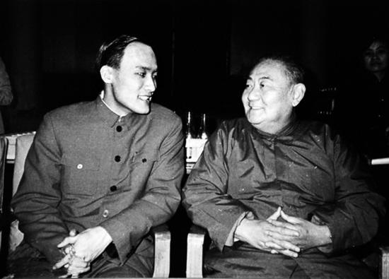 國畫大師婁師白(右)在與梁家輝交談,梁家輝到內地,也穿起中山裝,也算入鄉隨俗。