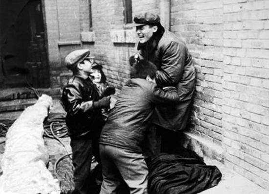 二十六歲的香港演員梁家輝身穿普通藍布制服,他飾演的末代皇帝就是這麼普普通通,同他過去飾演的至尊至上的鹹豐皇帝真是判若兩人。為了演好這個末代皇帝,他看過不少關于溥儀的書籍資料。梁家輝盡管曾扮演過鹹豐皇帝,這次又扮演末代皇帝溥儀,但他在日常生活中卻是一個十分活潑,甚至有些孩子氣的人,根本沒有一點“皇帝”味兒,與參加拍攝的群眾小演員亂打亂鬧。圖為小孩打“皇上”