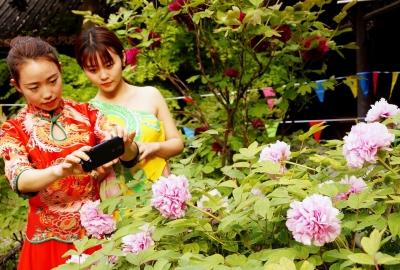 煙花三月,揚城百花盛開。瞧,東關街馥園內三株百年牡丹怒放。據記載,園內三株牡丹是百年老店謝馥春于清同治三年栽種,距今已有150年歷史。 沈揚生 攝