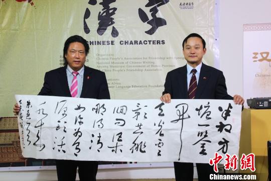 中新網約翰內斯堡4月24日電 4月23日,由中國人民對外友好協會、中國文字博物館、中國河南省安陽市人民政府與南非-中國人民友好協會聯合主辦,中國駐南非大使館支持,南非博物館和南非華文教育基金會協辦的2015《漢字》國際巡展南非展于南非博物館正式開幕。