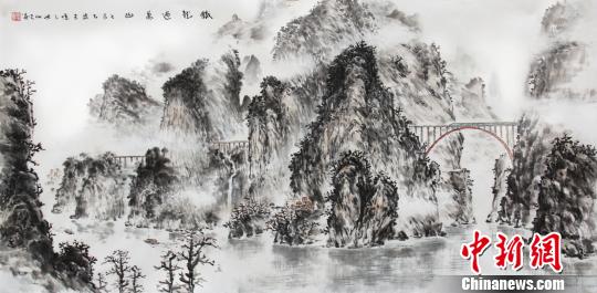 著名畫家曾中山創作的作品《鐵龍過萬山(中國畫)》 宋秀傑 攝