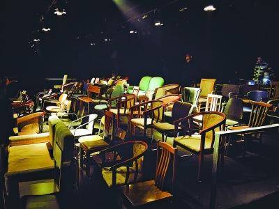 《飛向天空的人》同樣在形式上玩了一把創新,當散場燈光亮起,小宋瞪大眼睛,發現自己居然坐在舞臺上,周圍5排120把椅子沒有一把重樣——為了讓觀眾能夠更近看到“房間”內的狀態細節,他們被安排上臺,演員在觀眾席表演,劇場被翻轉了!