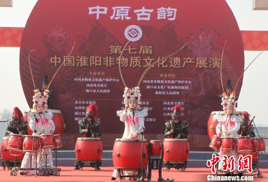 當日,“第七屆中原古韻——中國(淮陽)非物質文化遺產展演”在此間拉開帷幕,來自陜西、河北、江蘇、安徽、新疆等12省具有鮮明地方特色的項目近日陸續登臺展演。