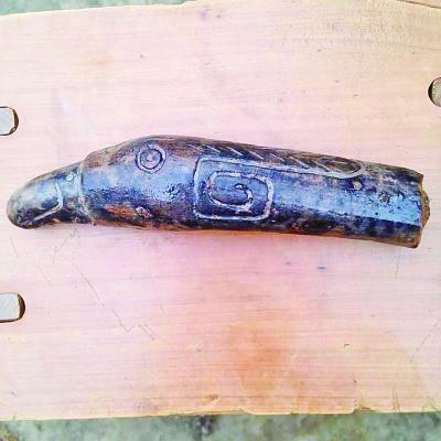 箭臺村遺址內出土陶器種類繁多,規模較大。同時,還出土有三星堆時期很典型的黑皮陶高柄豆、鳥頭勺把等器物。什邡市文物保護管理所所長楊劍介紹:“黑皮陶高柄豆,就是類似現在人們使用的果盤,而鳥頭勺則是舀水工具。”